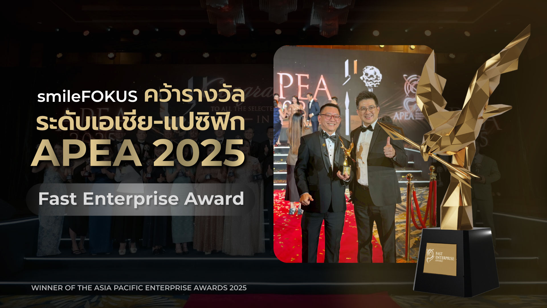 พวกเรา smileFOKUS รู้สึกภูมิใจและซาบซึ้งอย่างยิ่งที่ได้คว้ารางวัลระดับภูมิภาค Asia Pacific Enterprise Awards (APEA) 2025 สาขา Fast Enterprise