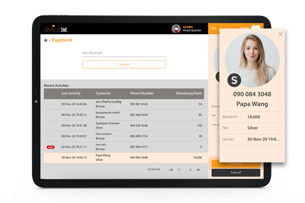 ระบบเก็บข้อมูลชำระเงินของ smileSME จะช่วยให้คุณหายกังวลใจเรื่องข้อมูลไม่เป็นระบบพร้อมมอบรางวัลแก่สมาชิกทันที
